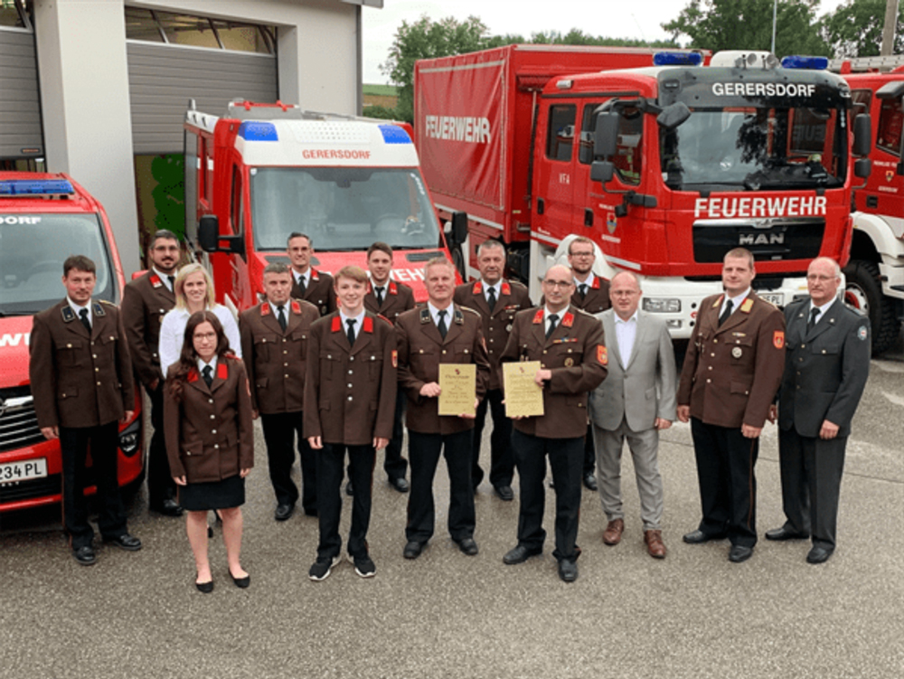 Am 25.06.21 fand im FF-Haus in Gerersdorf die 133. Mitgliederversammlung der FF-Gerersdorf statt. Normalerweise findet die Versammlung im Jänner statt, konnte aber aufgrund von Corona zu diesem Zeitpunkt nicht abgehalten werden. Bereits im Jänner wurde aber das neue Kommando nach einer Wahl unter Corona-Einschränkungen bestellt. Am 10. März gab es einen herzlichen Empfang für das neue Feuerwehrauto HLF-1 vor dem FF-Haus, das im Wert von 178.000 Euro zur Gänze von der Gemeinde Gerersdorf und dem Land NÖ finanziert wurde. Im Rahmen der Einsatzstatistik 2020 blickte das Kommando auf fünf Brandeinsätze, eine Brandsicherheitswache und 20 technische Ausrückungen zurück. Insgesamt leistete die FF-Gerersdorf im vergangenen Jahr 3.764 Stunden für die Allgemeinheit. Befördert wurden: Zum Feuerwehrmann/Feuerwehrfrau: Katja Fraberger, Clemens Harm, Lukas Kreimel, Jana Wieder. Zum Oberfeuerwehrmann: Markus Leeb Zum Hauptfeuerwehrmann: Thomas Zuser Zum Oberlöschmeister: Claudio Chines Zum Sachberarbeiter: Markus Leeb, Philip Ratzinger Zum Brandmeister: Gerhard Gernbeck, Thomas Punz Zwei Feuerwehrmännern wurde eine besondere Ehrung zuteil: OV Thomas Zuser wurde zum Ehrenoberverwalter ernannt, der frühere Kommandant HBI Christian Grünauer zum Ehrenkommandant. Die Segnung des neuen Feuerwehrautos erfolgt im Rahmen des „Tages der Feuerwehr“ am 22. August.