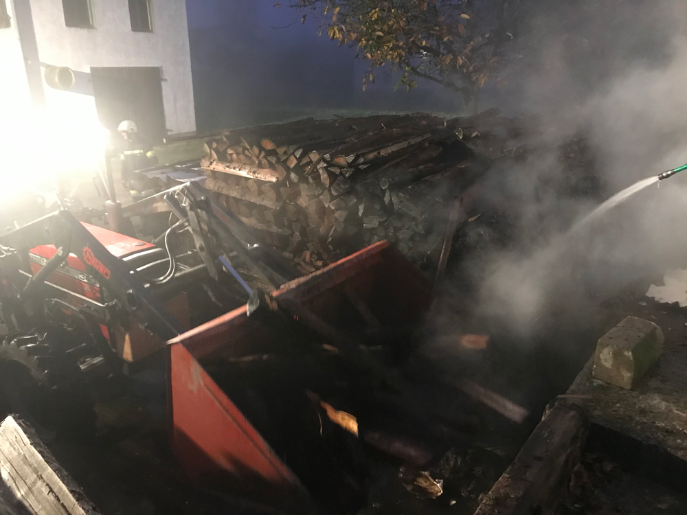 Ein Komposthaufen war in Brand geraten und das Feuer hat auf einen Holzstoß übergegriffen.