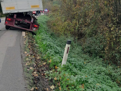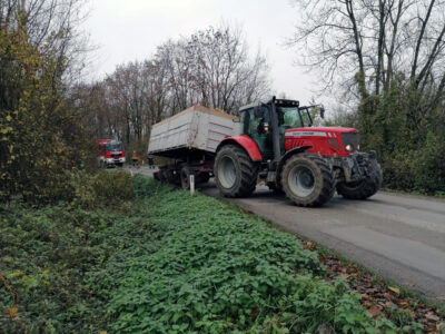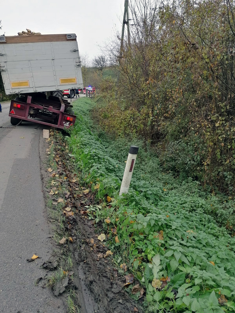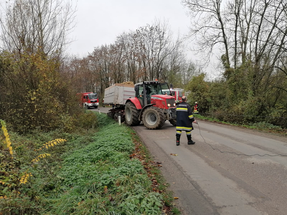 Ein vollbeladener Anhänger kam rechts in das Straßenbankett und drohte umzustürzen. Nach Rücksprache mit dem Einsatzleiter wurde der Anhänger mit der Seilwinde des RLF Prinzersdorf gesichert und mit der Seilwinde des TLF Gerersdorf aus dem Straßenbankett gezogen.