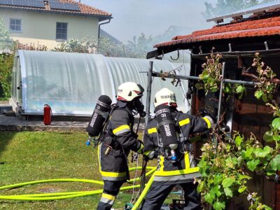 Schon während der Anfahrt ins FF-Haus konnte eine schwarze Rauchwolke gesichtet werden. Nach der Besichtigung des Objekts durch den Einsatzleiter, wurde mit zwei Atemschutztrupps zur Bekämpfung des Brandobjekts vorgegangen.