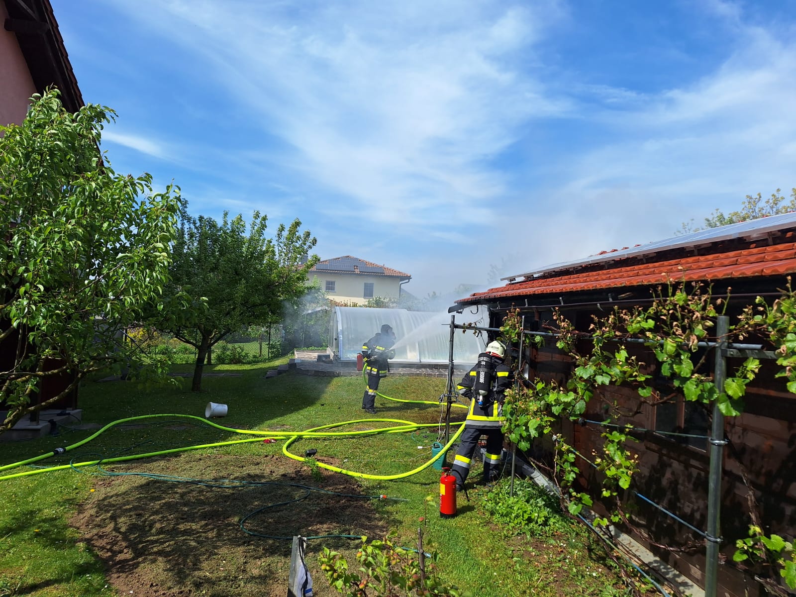 Schon während der Anfahrt ins FF-Haus konnte eine schwarze Rauchwolke gesichtet werden. Nach der Besichtigung des Objekts durch den Einsatzleiter, wurde mit zwei Atemschutztrupps zur Bekämpfung des Brandobjekts vorgegangen.
