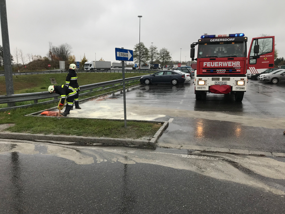 Am 13.11.19 wurde die FF-Gerersdorf um 11:52 Uhr von Florian St. Pölten mittels Pager und SMS zu einem Ölaustritt bei der LKW Tankstelle Völlerndorf alarmiert. Einsatzleiter: HBI Christian Grünauer
