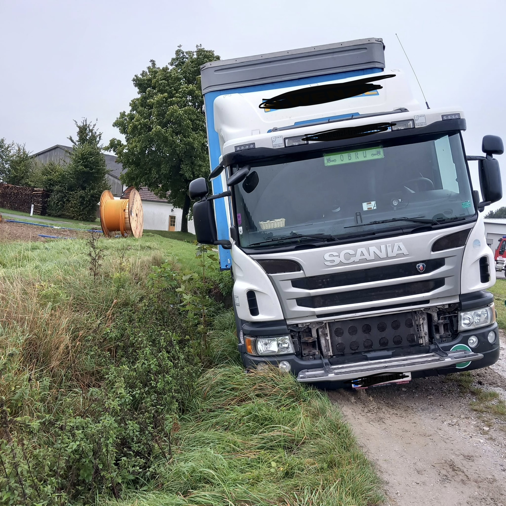 Am Donnerstag, den 25. September 2025 rutschte am Vormittag gegen halb 9 ein LKW in den Graben.