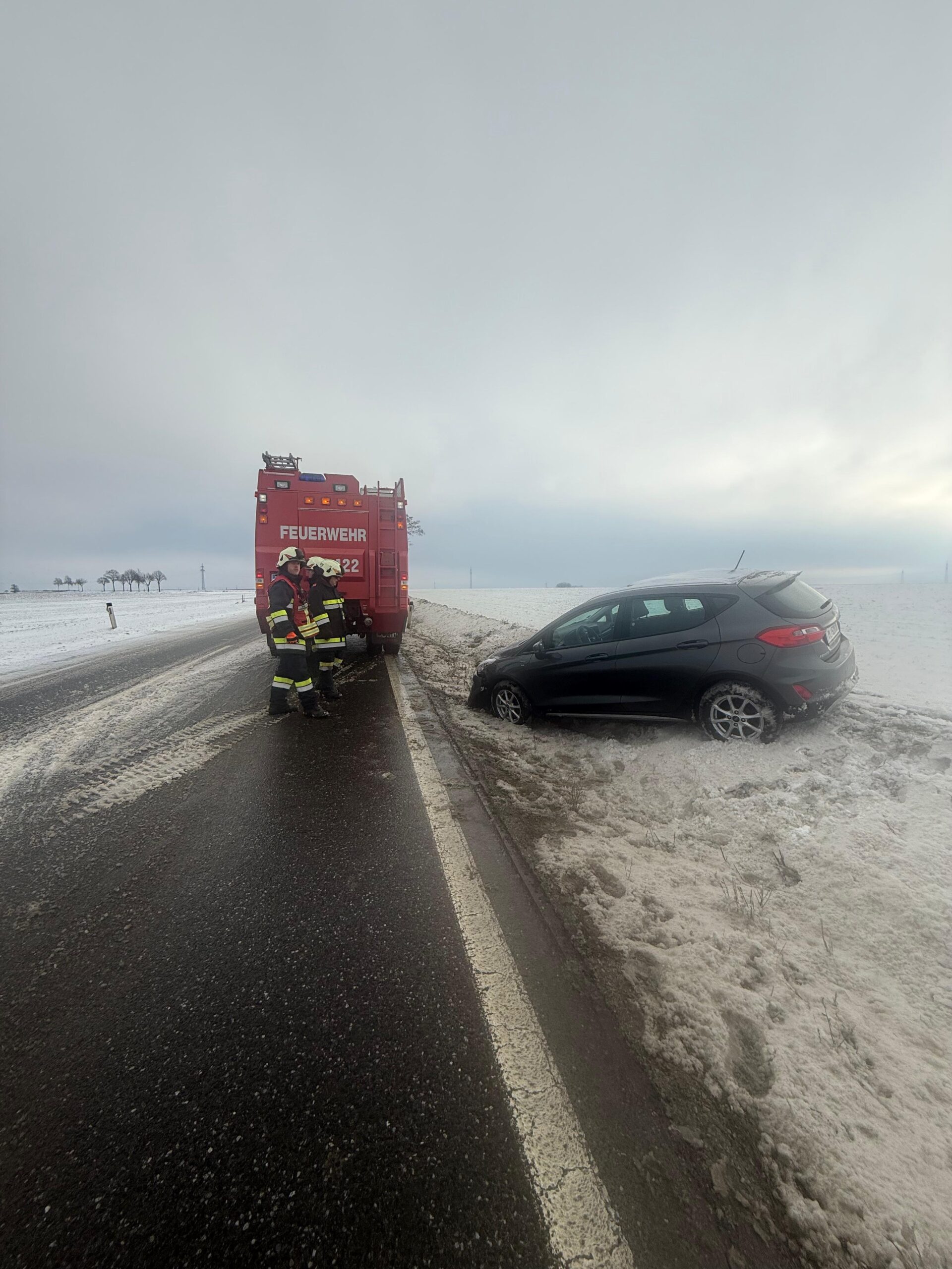 Am Christtag zur Mittagszeit wurden wir zu einer PKW-Bergung auf die Bundesstraße Richtung St. Pölten alarmiert. Ein PKW kam aufgrund der eisigen und verschneiten Verhälnisse von der Straße ab. Mit unserem Last und dem Tank im Einsatz konnte das verunfallte Fahrzeug aus dem Graben gezogen werden. Anschließend wurde der PKW gesichert in Gerersdorf abgestellt.