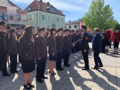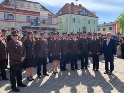 Im Anschluss wurden 5 Mitglieder der Freiwilligen Feuerwehr durch HBI Matthias Fraberger und BGM Herbert Wandl angelobt: