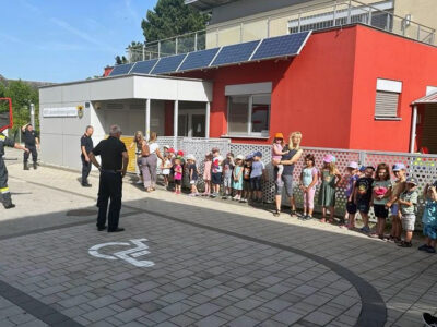 Zum Schluss wurden die Kinder und Pädagoginnen mit den Feuerwehrautos wieder zurück in den Kindergarten gebracht.