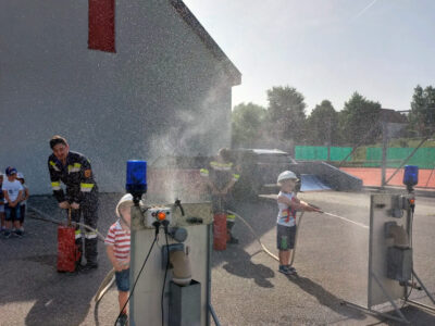 In diesen 4 Stationen erfuhren die Kinder sowohl etwas über die Feuerwehrjugend, als auch über den aktiven Feuerwehrdienst. Weiters konnten sie die Feuerwehrautos bestaunen. Zudem durfte auch jedes Kind mit den Kübelspritzen und dem HD-Rohr spritzen.
