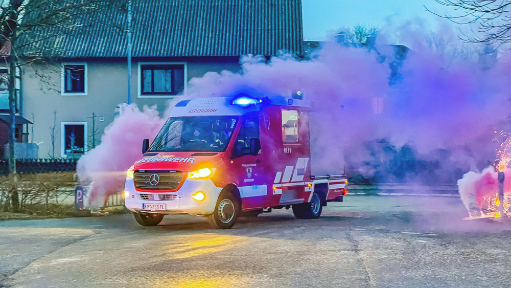 Am 10.03.21 konnten vier Mitglieder der Feuerwehr Gerersdorf das neue HLF1 von der Firma Rosenbauer übernehmen. Nach der Überprüfung des Fahrzeuges und der Geräte wurde das Fahrzeug nach einer kurzen Einschulung der FF-Gerersdorf übergeben. Um 18:00 Uhr wurde das neue HLF-1 mit bunten Rauchfahnen, bengalischem Feuer und „mit Abstand“ von einigen Mitgliedern der FF-Gerersdorf und Bürgermeister Herbert Wandl begrüßt. Danach wurde gleich mit einer Einschulung begonnen, damit das Fahrzeug auch einsatzbereit und die Mannschaft damit vertraut ist.