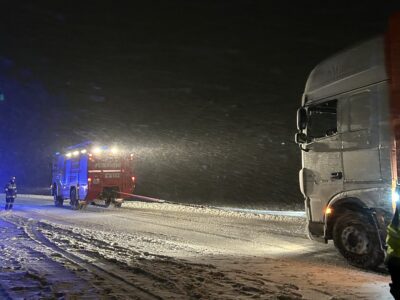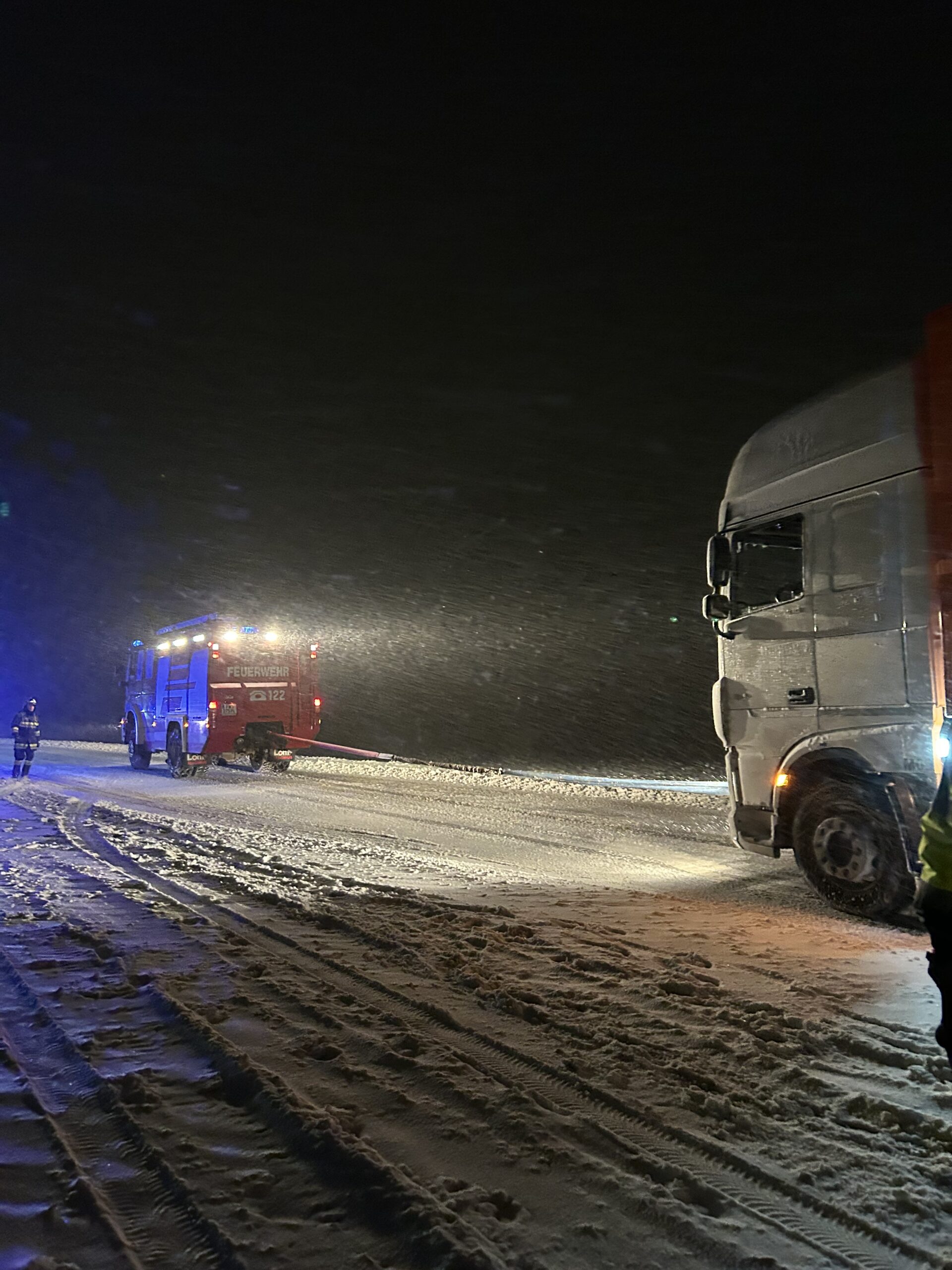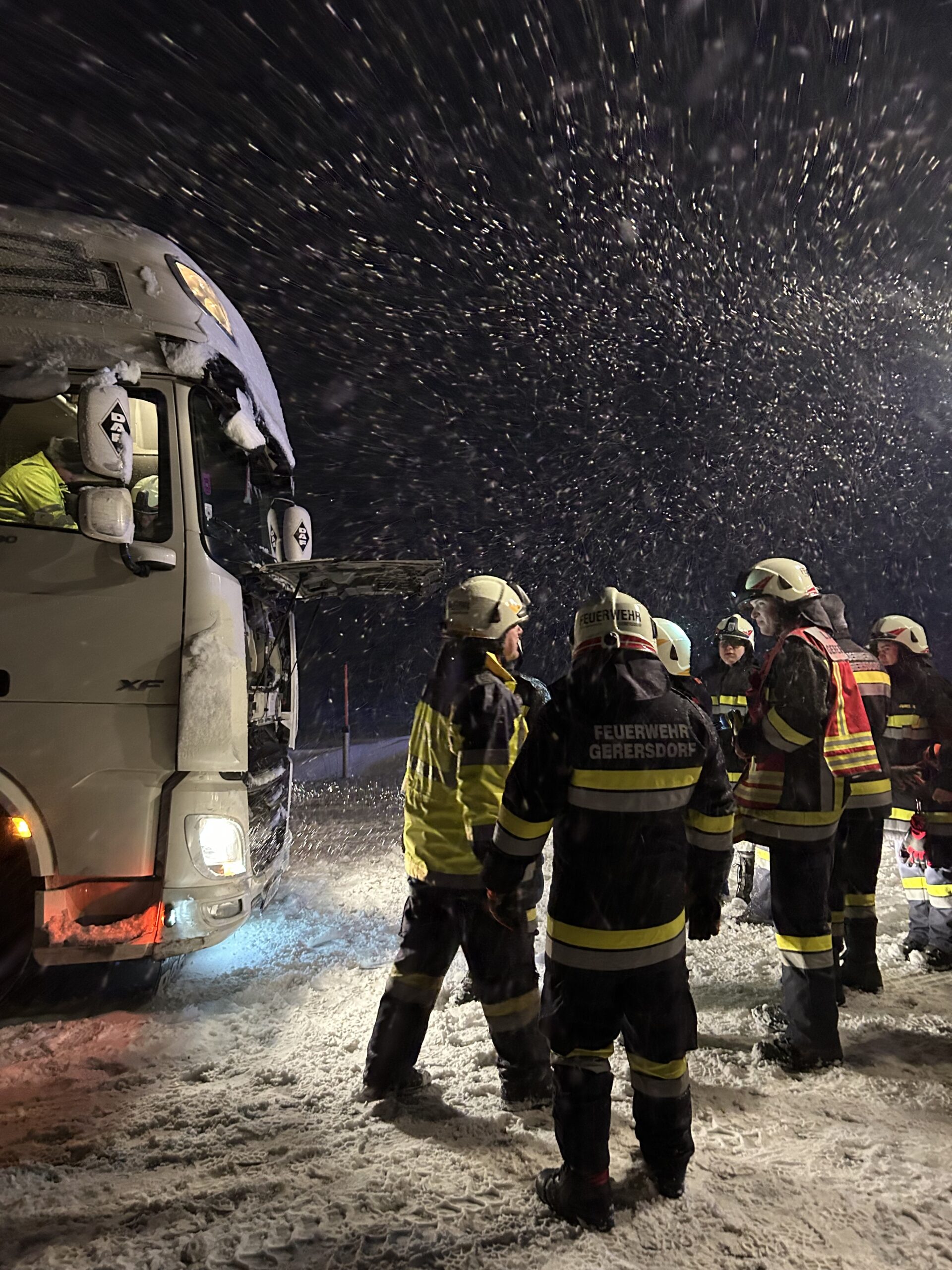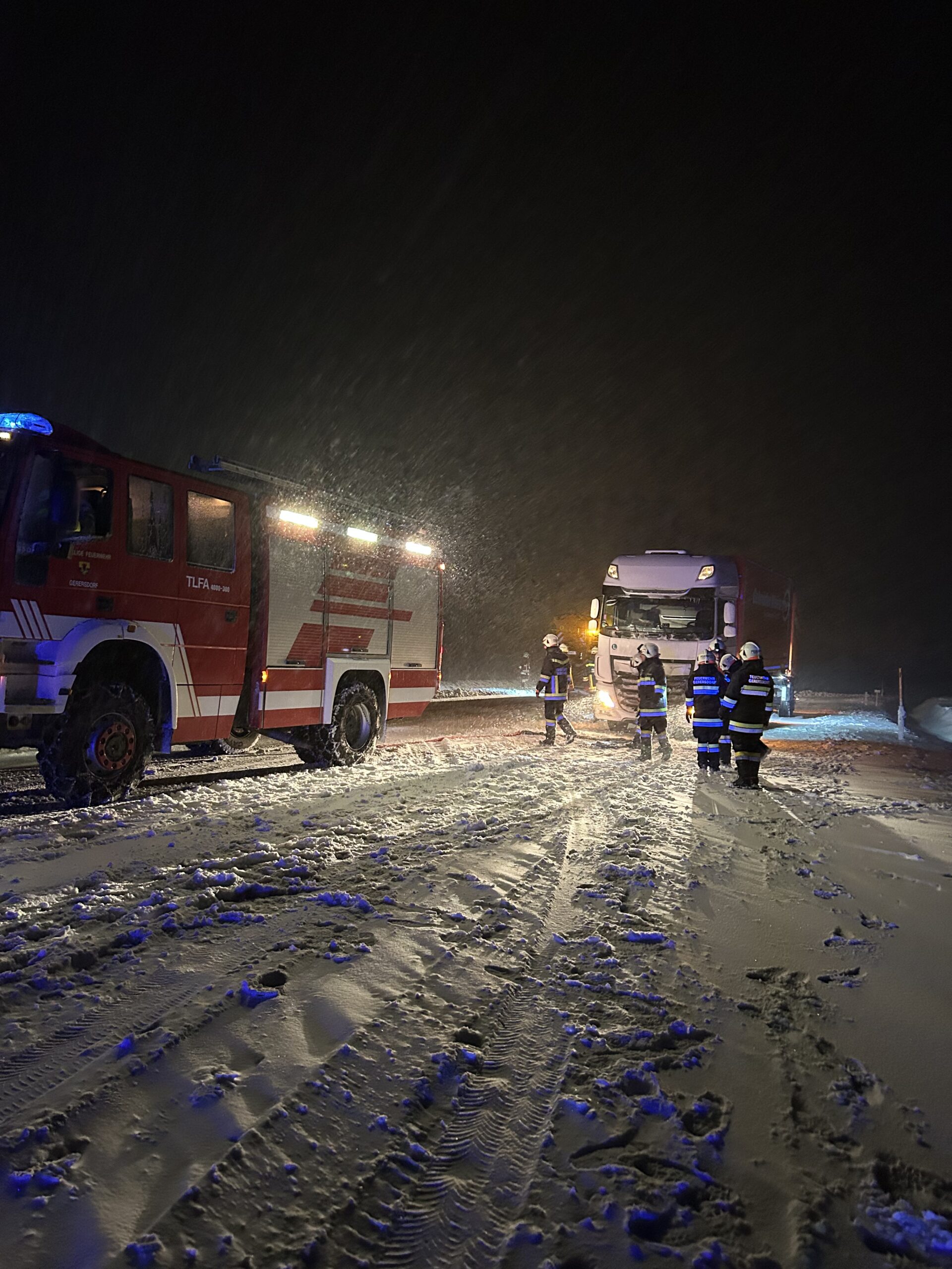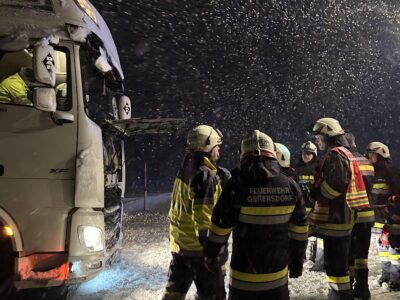 Am Freitag, den 20. Februar gegen halb 3 Uhr früh wurden wir alarmiert: Zwei LKWs konnten den verschneiten Berg zwischen Prinzersdorf und Gerersdorf nicht mehr hinauffahren. Mittels unserem Tanklöschfahrzeug und Rundschlingen zogen wir beide Fahrzeuge Stück für Stück sicher nach oben.