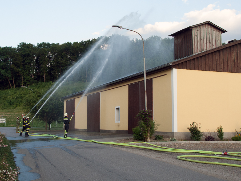Am 17.06.14 fand in Loipersdorf eine Übung der FF-Gerersdorf statt. Übungsannahme: Dachstuhlbrand eines Wirtschaftsgebäudes. Die FF-Gerersdorf rückte mit Tank und Pumpe zum Einsatzort aus. Geübt wurden die Löschung des Dachstuhles und das Legen der Versorgungsleitung aus dem nahen Löschteich. Übungsleiter: OBM Markus Kropshofer