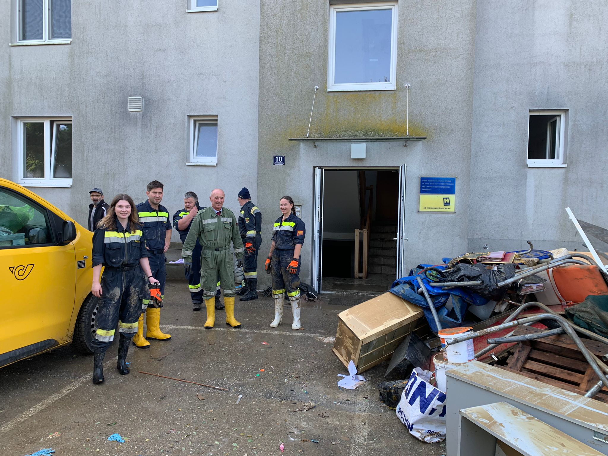 Jedoch hat es unsere Nachbargemeinden weit schlimmer getroffen. Aus diesem Grund unterstützten wir auch die Kameraden der FF-Hafnerbach-Markt, der FF-Prinzersdorf, der FF-Markersdorf-Markt und der FF-Haunoldstein.
